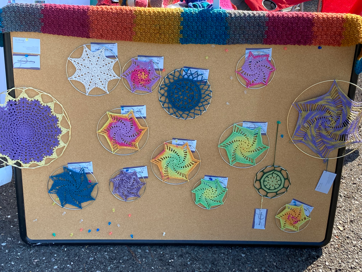 I'm Linn, a crafter who sells her products at farmers' markets and craft bazaars in central Virginia. I work primarily in crochet and non-acrylic fiber with the assistance of my cats, Ivan and Pippin.